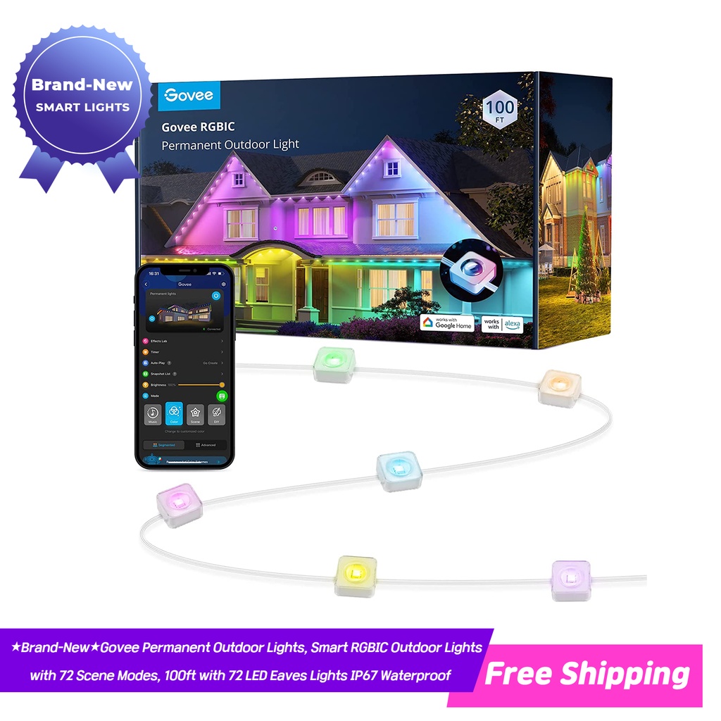 Govee Permanent Outdoor Lights, Smart RGBIC Outdoor Lights with 72