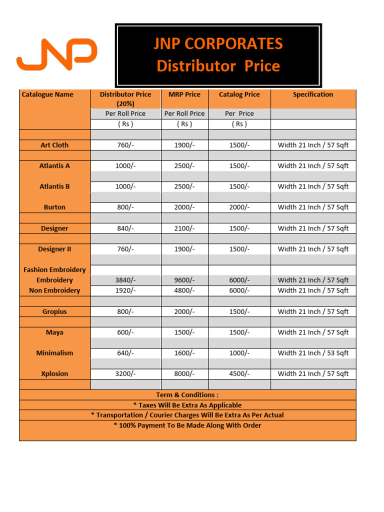 JNP Corporates Distributor Price PDF