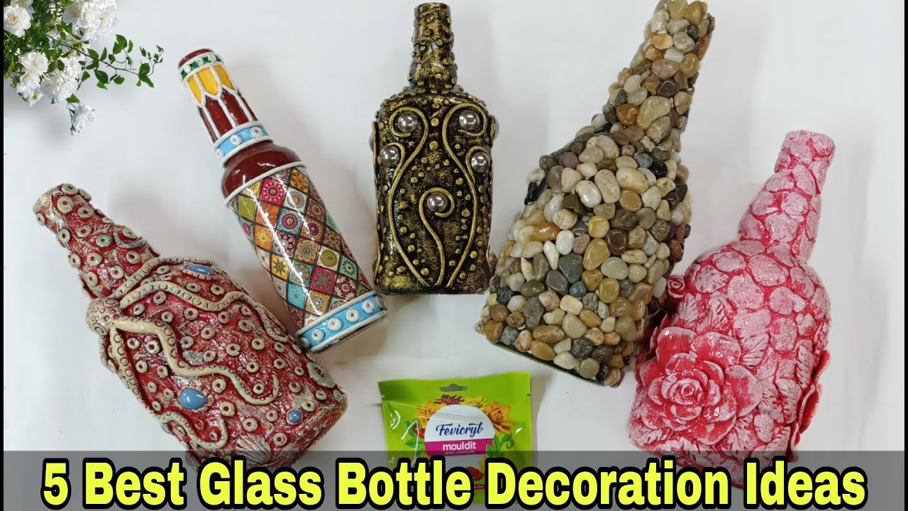 5 Amazing Glass Bottle Decoration Ideas DIY Craft Bottle Art YouTube