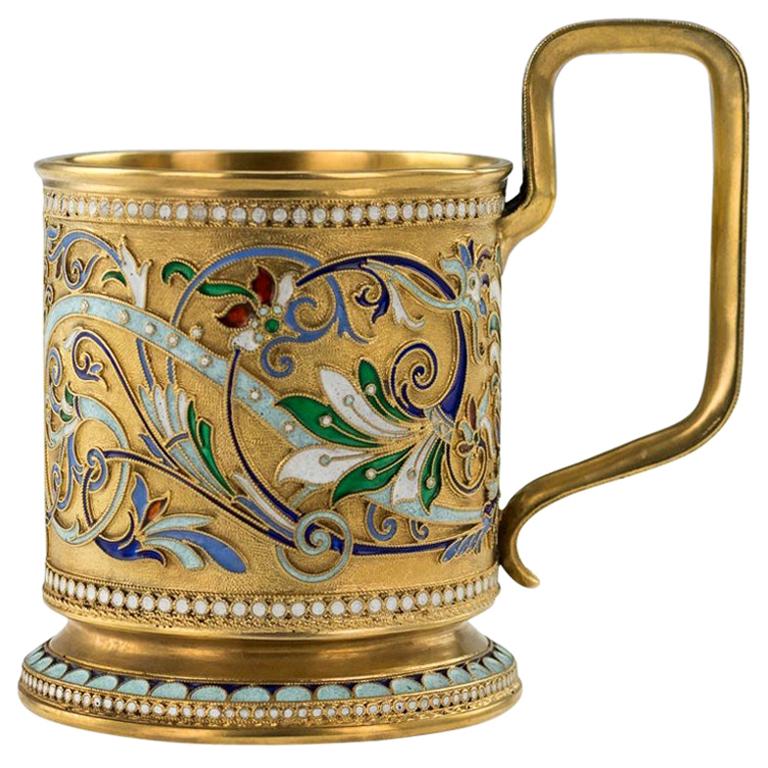20th Century Imperial Russian SilverGilt Enamel Tea Glass Holder For