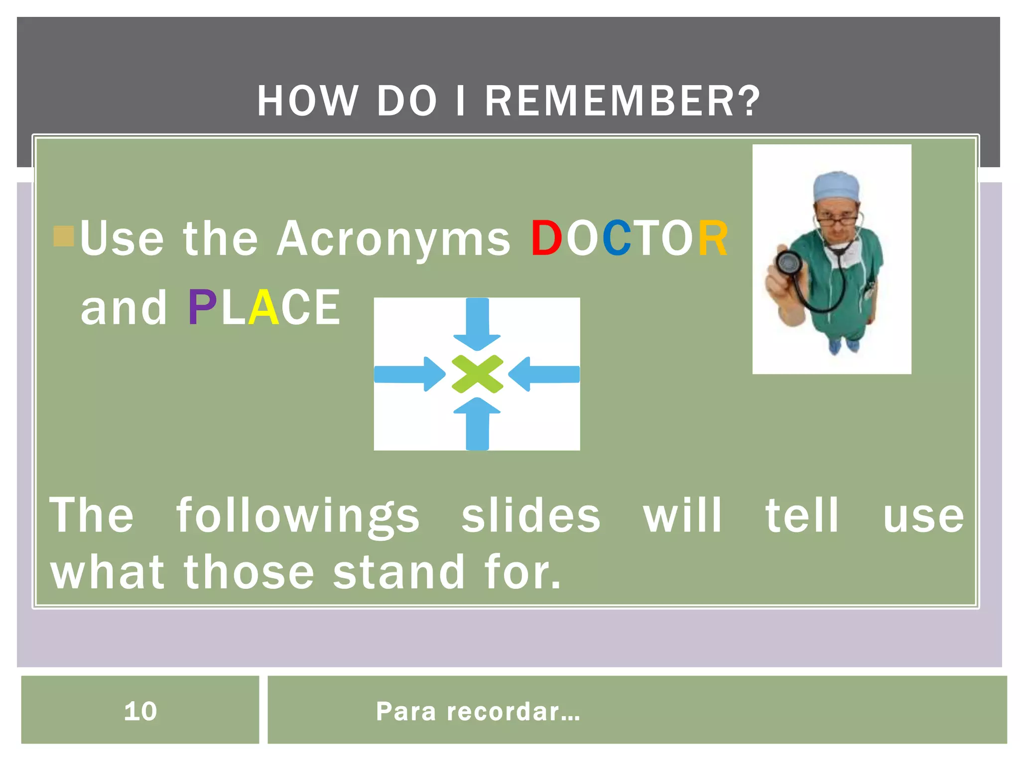 6 doctorplace Doctor And Place Acronym Spanish Spanish doctor (ser) and place (estar) acronym, spanish interrogative words, el verbo ser / the verb ser, subjects & subject pronouns in spanish. Though both ser and estar are the spanish infinitives of ‘to be’, they are used in different contexts. The followings slides will tell show you how to use them and what they stand for. Help memorizing the. Doctor And Place Acronym Spanish.