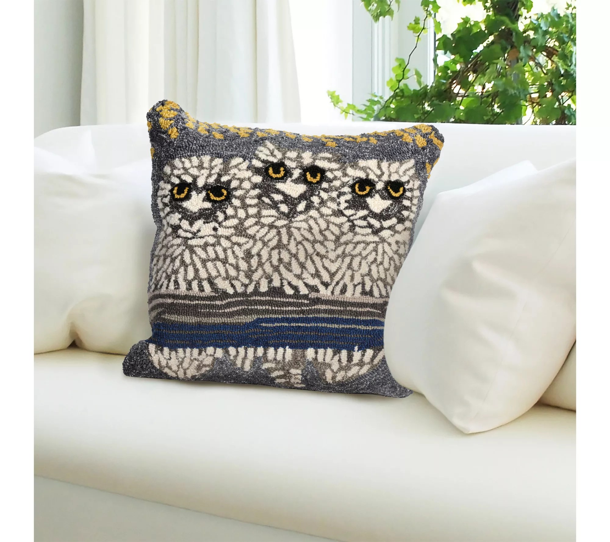 Liora Manne Frontporch Owls Pillow Night 18" Square