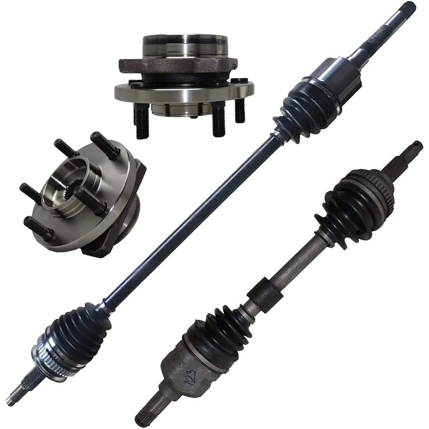 4pc Front CV Axles Wheel Hub and Bearings Kit