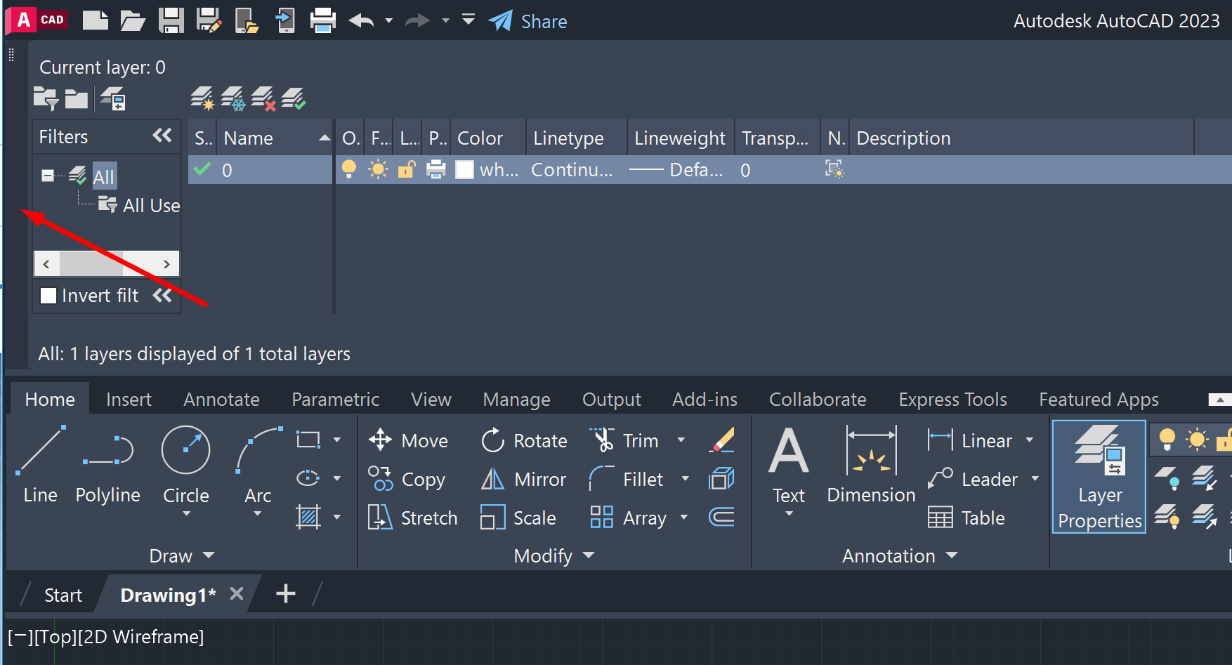 Layer Properties Manager dialog is locked in the AutoCAD Ribbon