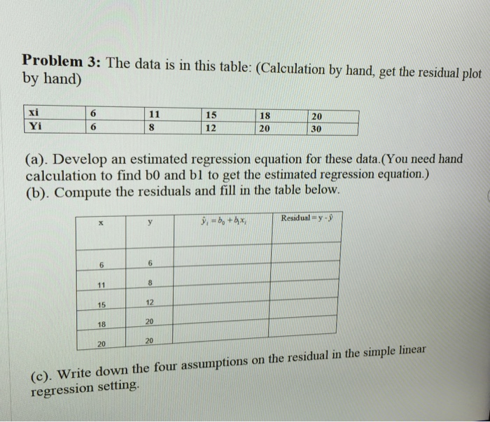 Solved The data is in this table (Calculation by hand, get
