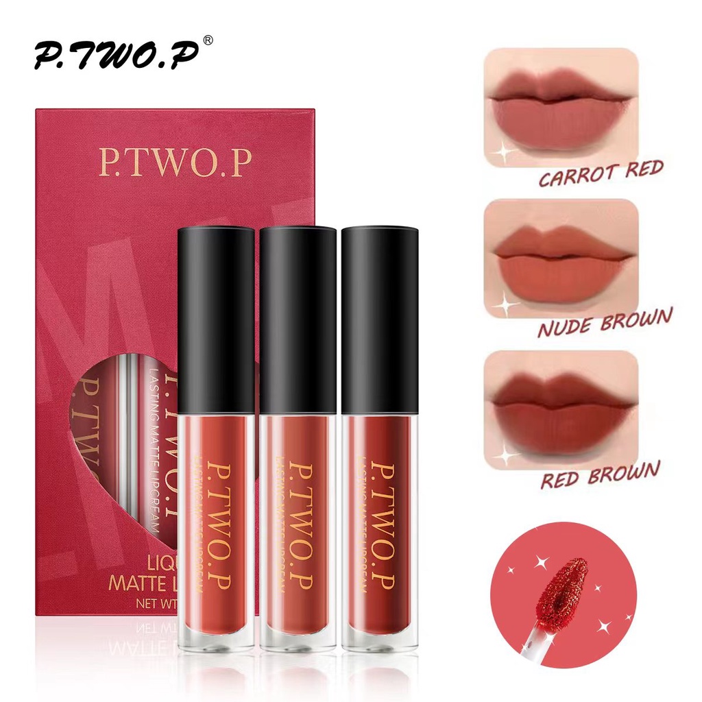 P.TWO.P 3 PCS Matte Lip Tint Set Long Wearing Waterproof Lipstick Kit