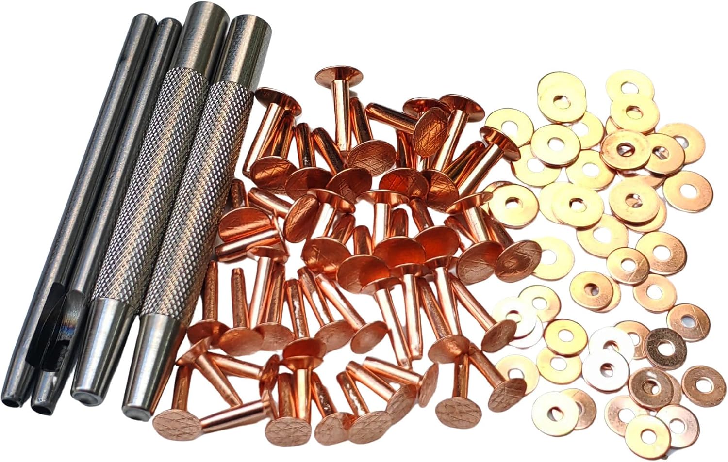 JUNESunShine 84Pcs, Copper Rivets and Burrs, 9 and 12 Burrs Setter Copper Rivets And Burrs Our copper rivets and burrs set is a useful helper to make or repair leather products. #12 has a medium post. #9 has a thick post. We stock several post thicknesses and post lengths to work for any project. copper rivets will hold anything together. check out our copper rivets leather burrs selection for the very best in. Copper Rivets And Burrs.