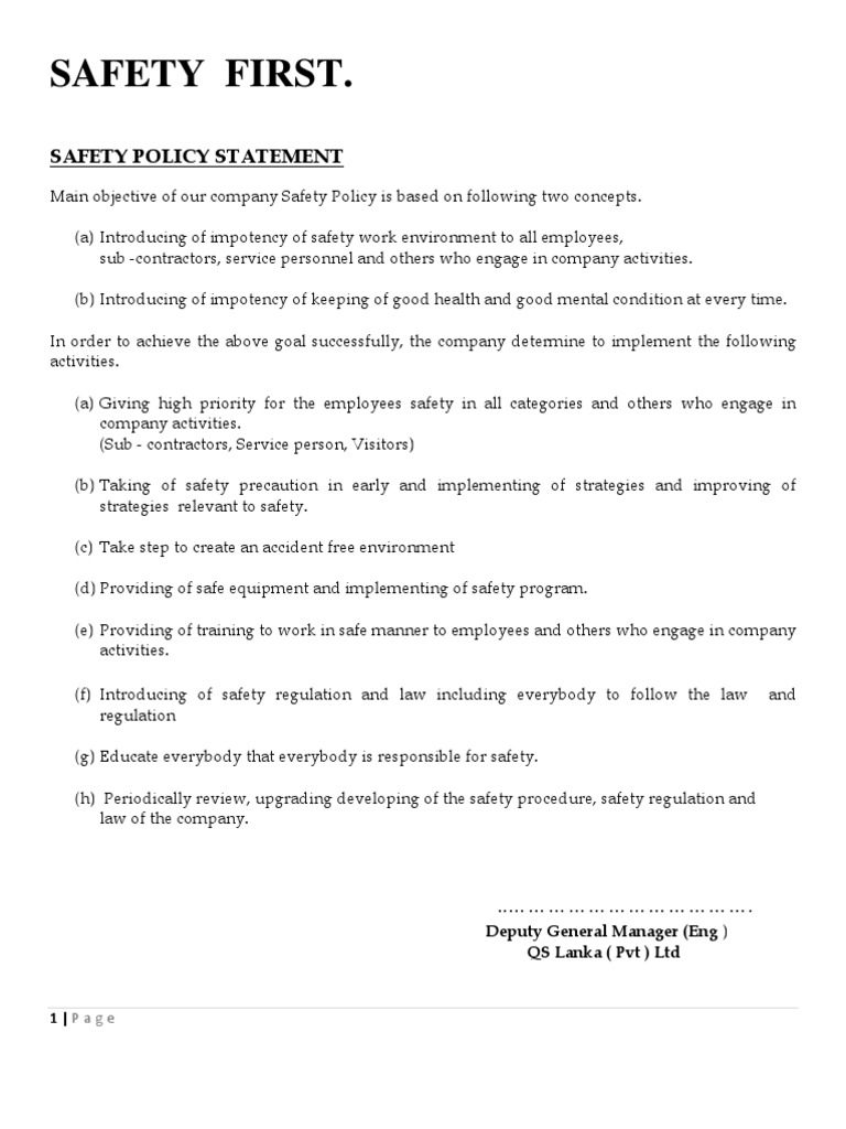 Safety Policy Statement PDF Sound Personal Protective Equipment