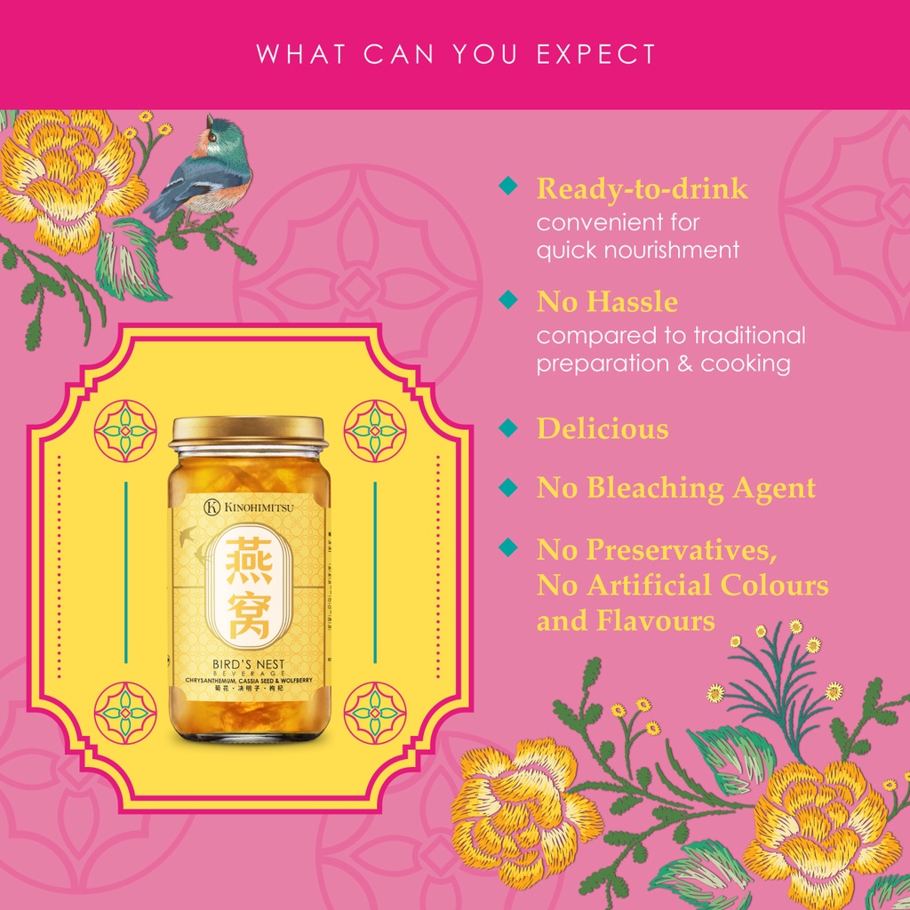 Promo Kinohimitsu Bird's Nest Beverage with Chrysanthemum (Minuman Kinohimitsu Bird Nest Singapore Kinohimitsu kinohimitsu bird's nest with collagen 75ml x 6s | health foods & drinks | watsons singapore. Kinohimitsu bird’s nest with snow lotus and honey (reduced sugar) combines the goodness of genuine deluxe quality bird’s nest, snow lotus and honey, carefully prepared to retain. Kinohimitsu bird's nest drinks ain't your grandma's tonic. Kinohimitsu bird’s nest beverage with fig & honey. Kinohimitsu Bird Nest Singapore.