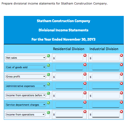 Solved Prepare divisional statements for Statham