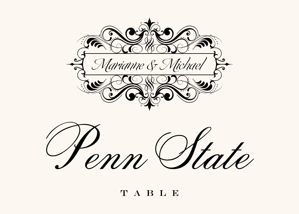 Zowie Vintage Monogram Flourish Wedding Table Name Cards Documents