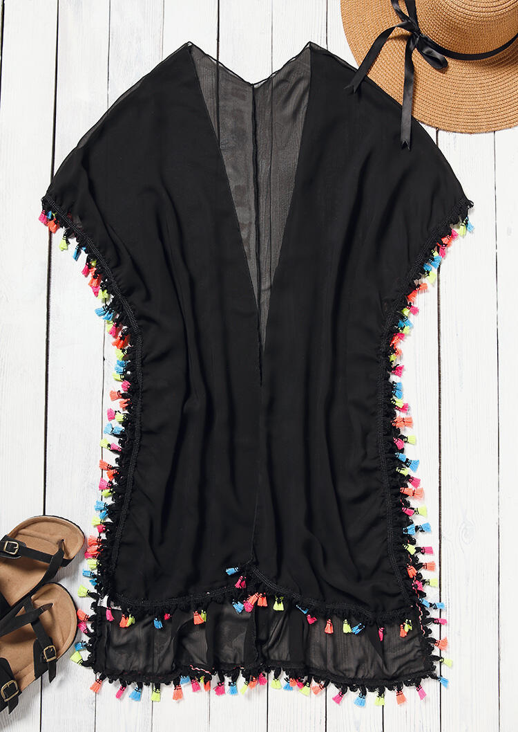 Bohemian Colorful Tassel Cover Up Black Bellelily Tassel Dress Coverup Buy tassel tie embroidered cover up dress at bloomingdale's today. Women's tassel trim wrap beach cover up long dress sleeveless bikini coverups kmono Featuring playful tassel ties and flattering half sleeves,. Tassel Dress Coverup.