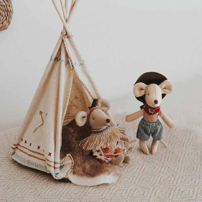 Handmade Cotton Linen Cute Little Mouse Doll Mini Circus Mice Stuffed