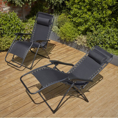 Black Zero Gravity Outdoor Relaxer Chairs 2 Pack Outdoor & Garden