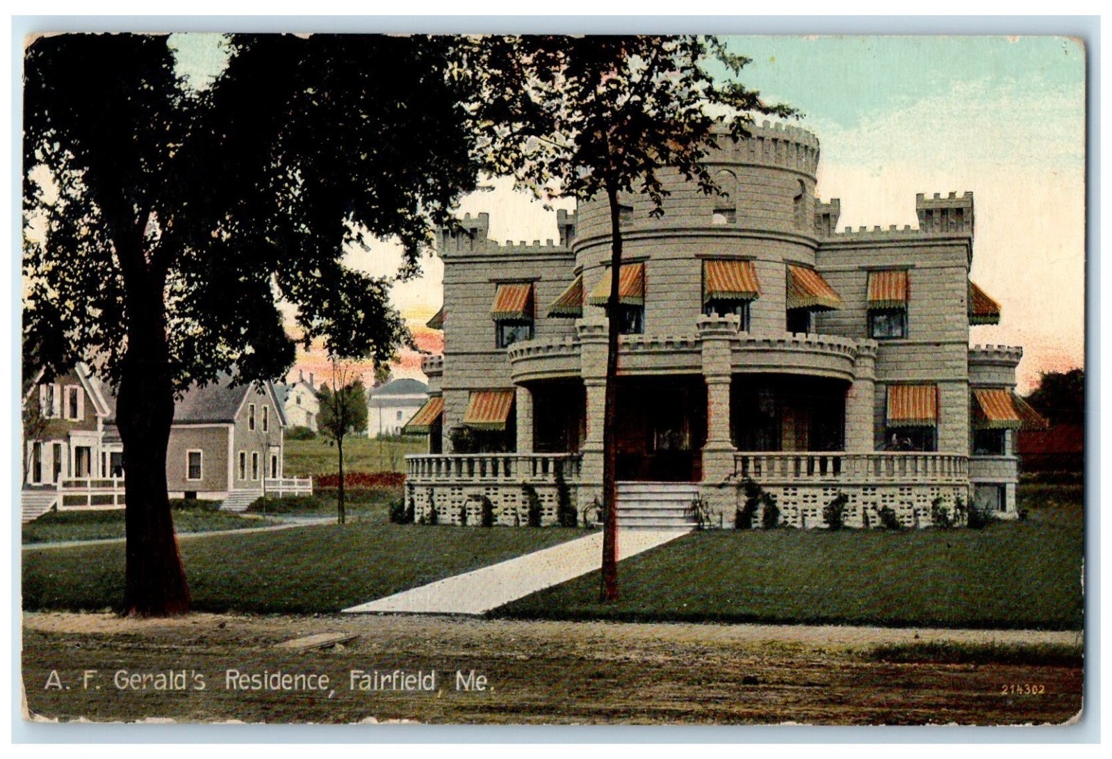 1911 Exterior View AF Gerald Residence Building Fairfield Maine Vintage