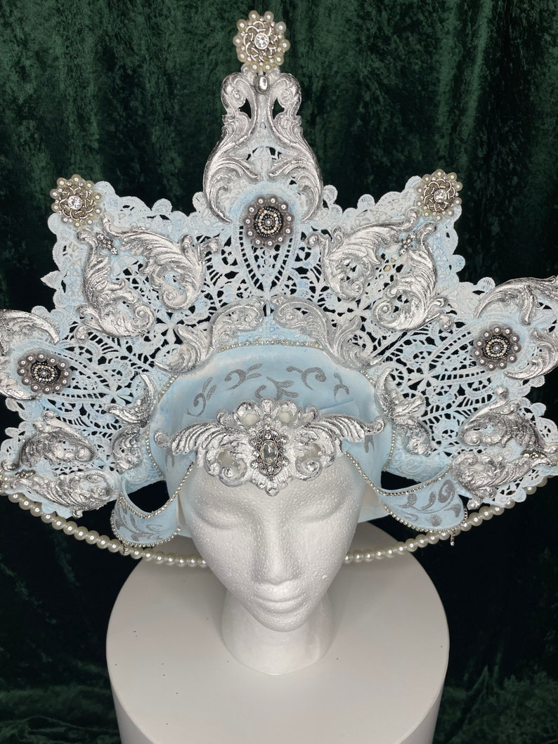Ice Queen Headpiece/snow Queen Headpiece/russian Kokoshnik Etsy Ice Snow Queen Costume Headpiece Below some examples of lovely crowns by. Check out our snow queen headpiece selection for the very best in unique or custom, handmade pieces from our costume hats & headpieces shops. Another option as crown is this lovely eastern european looking and amazing headpiece made by deborah harper from mimsy crowns. This snowflake shaped headdress is created from silver lace,. Snow Queen Costume Headpiece.