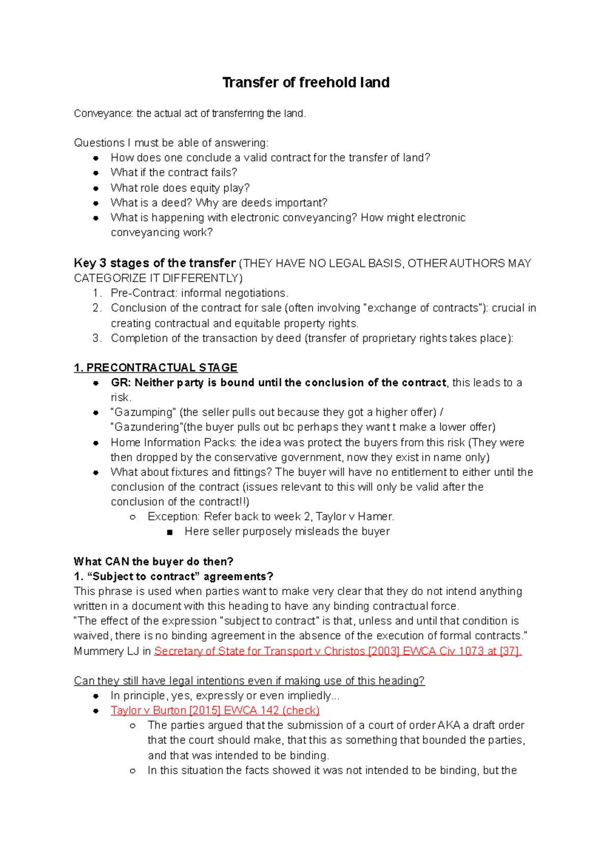 2. Transfer of freehold land Transfer of freehold land Conveyance