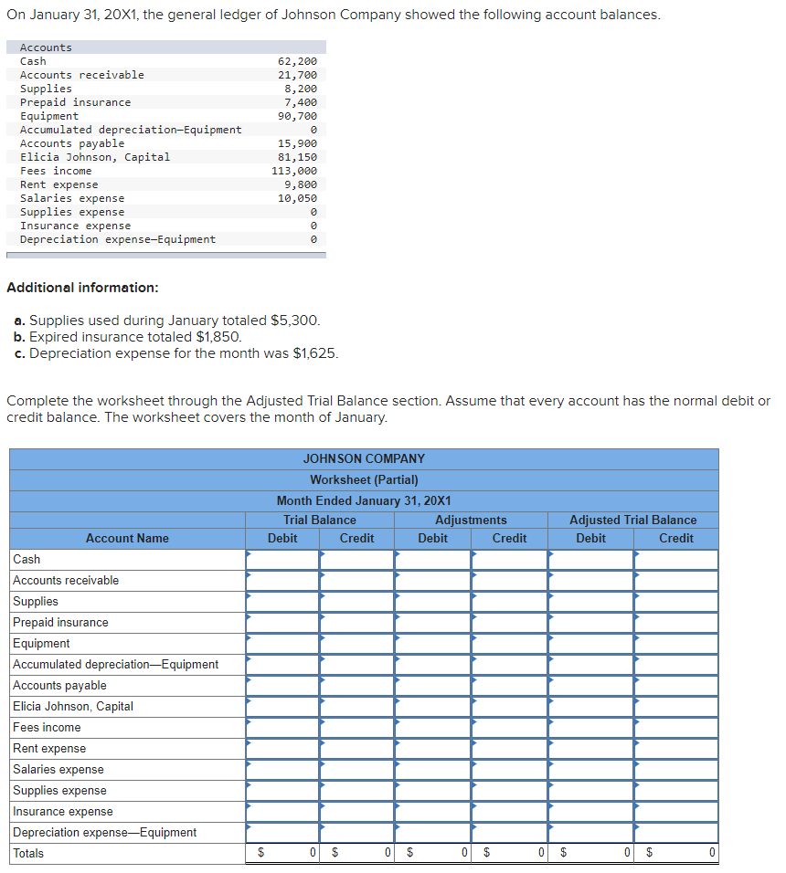 Solved On January 31, 20X1, the general ledger of Johnson