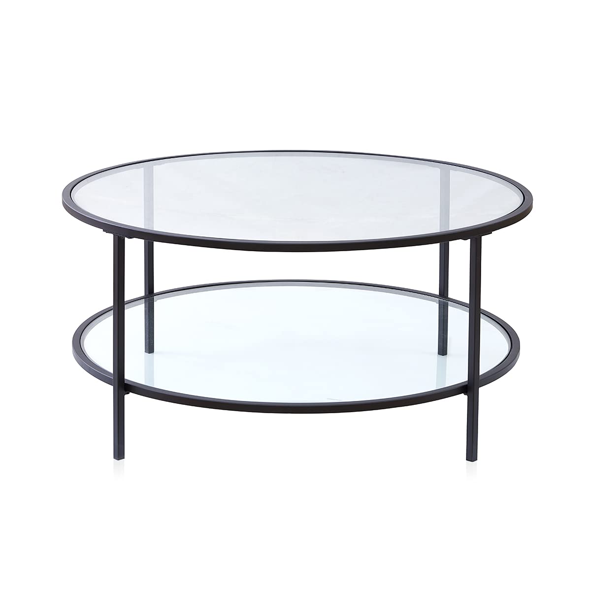 Buy JBBCN 36in Modern Round Glass Coffee Table Decor with 2 Tier Tempered Glass Boards & Metal