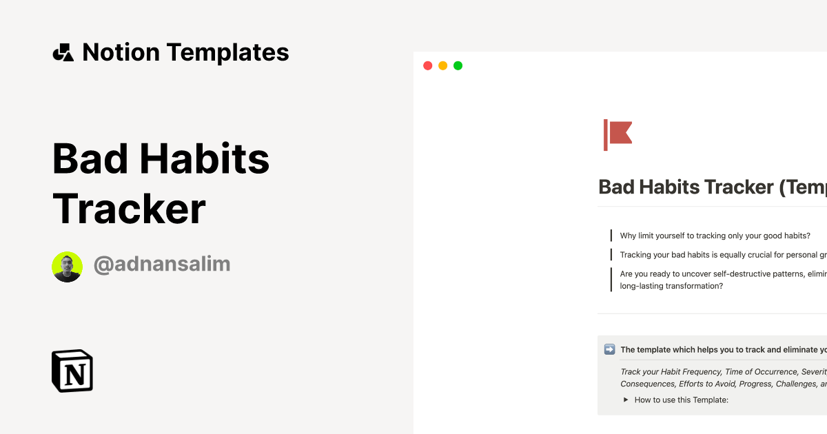 Bad Habits Tracker Notion Template