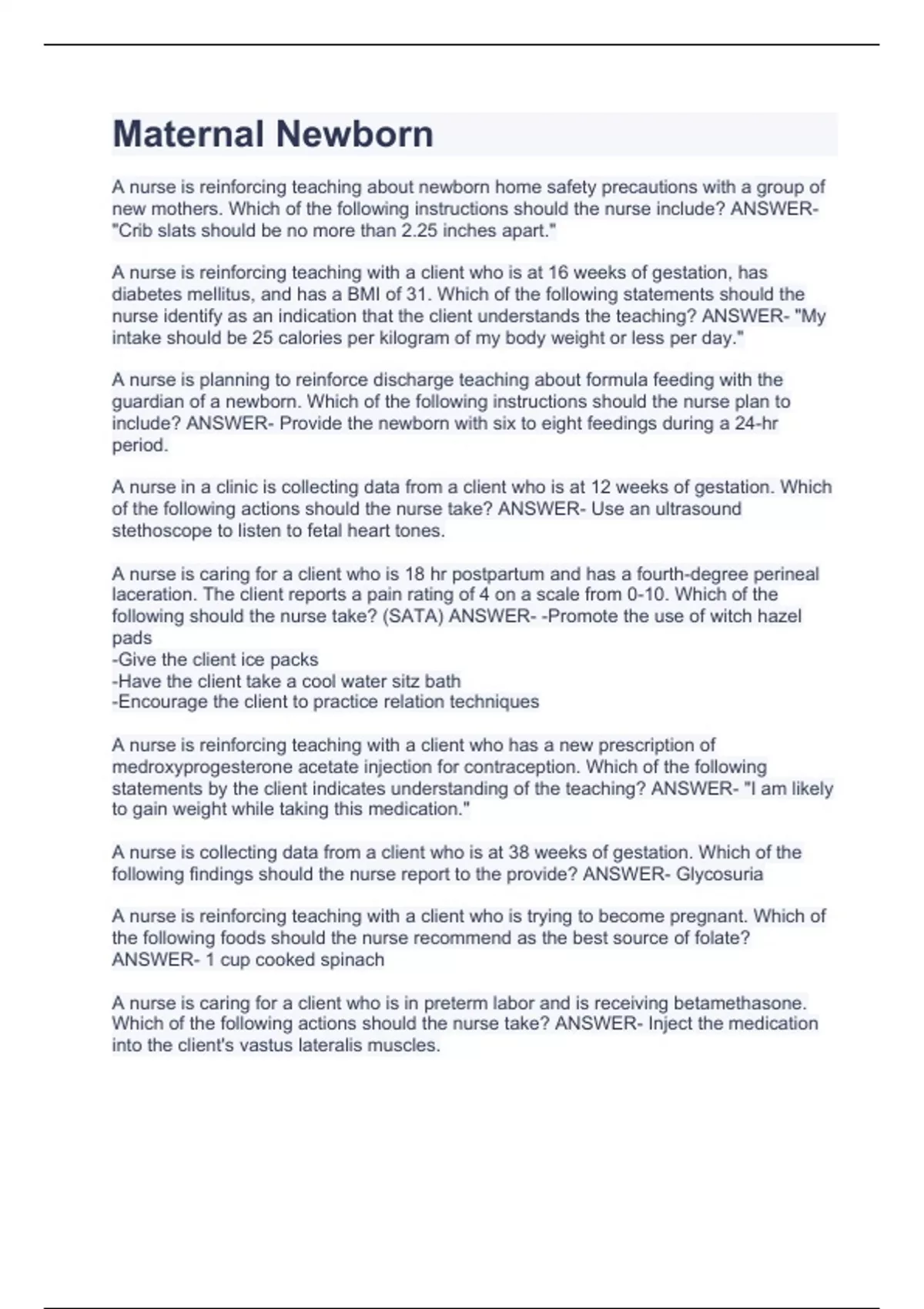 ATI RN maternal newborn nursing REVIEW LATEST 2023 FULLY ANSWERED Maternal Newborn Nursing Review Quizlet Week 1 edapt introduction to maternal child nursing. Study with quizlet and memorize flashcards containing terms like the neonatal period, approximately _____ of amniotic fluid is forced. Test your competence with these 50 questions from our nursing test. This nursing test bank includes 500+ practice questions to test your. Study with quizlet and memorize flashcards containing terms like total pounds. Maternal Newborn Nursing Review Quizlet.