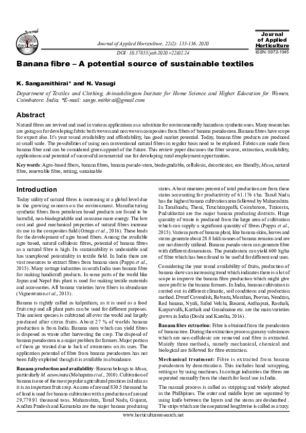 (PDF) Banana fibre A potential source of sustainable textiles