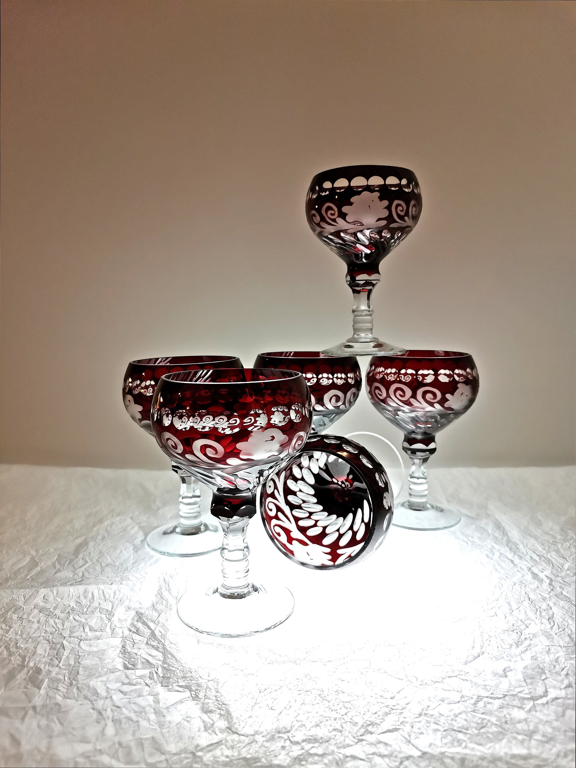 Crimson Red Wine Glasses Novy Bor 1960s Etsy