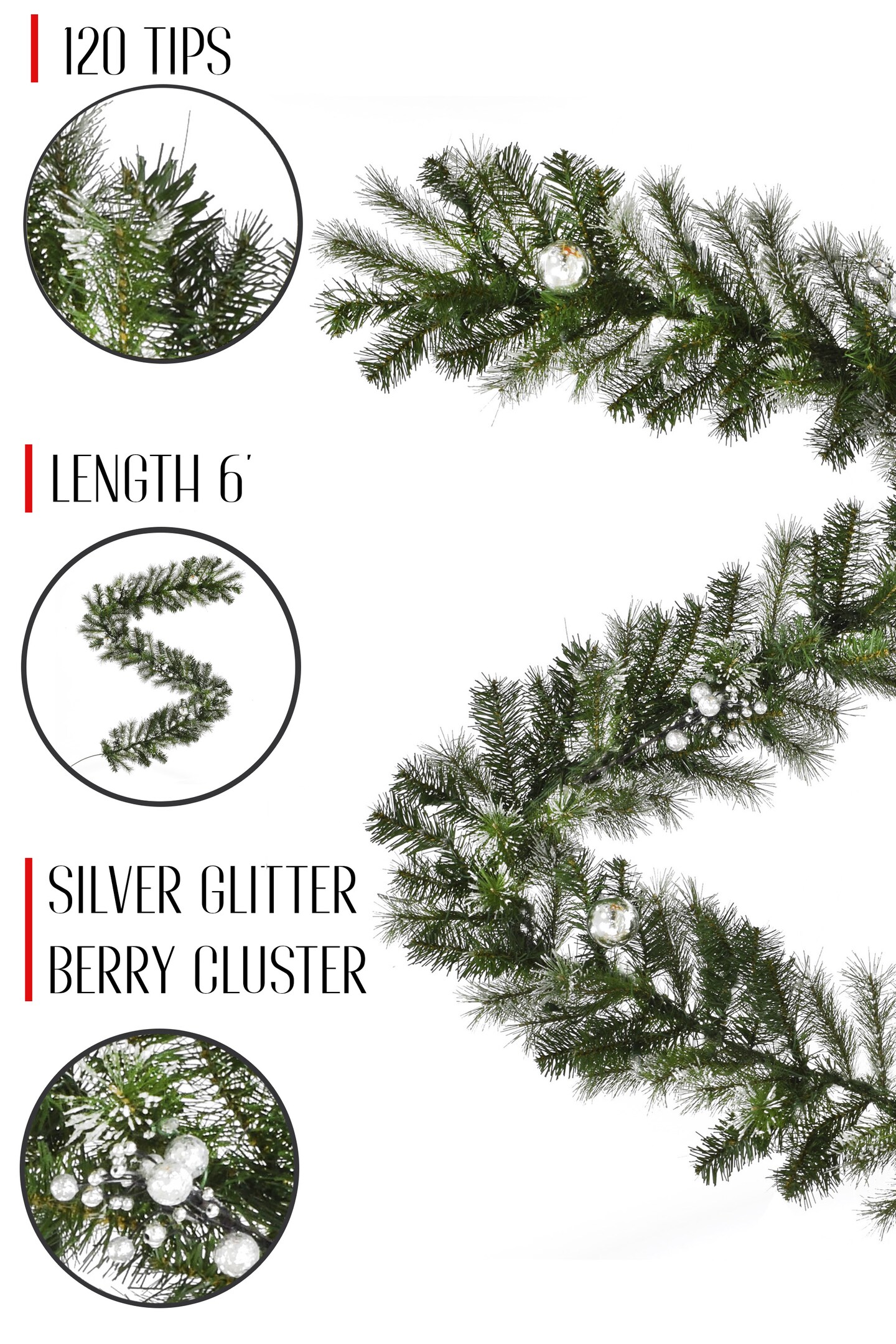 Perfect Holiday 6ft Snow Dusted Nulato Pine Garland With Silver Ornaments And Glitter Berry