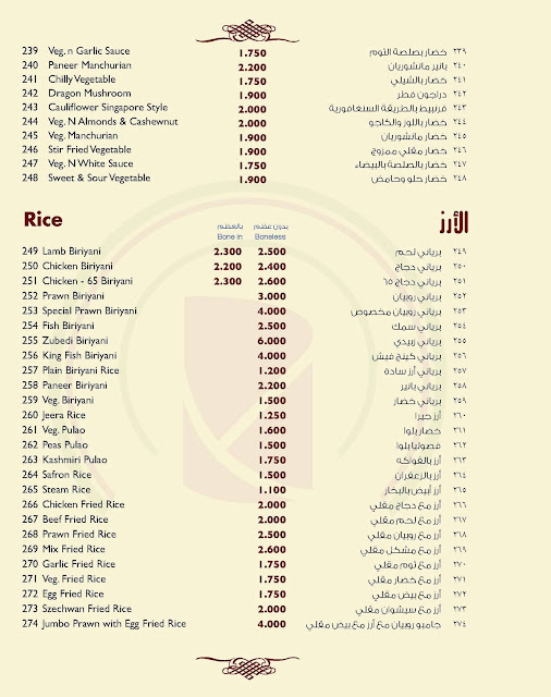 Kohinoor Restaurant Food Menu / Phone Number Kuwait Restaurant Menu