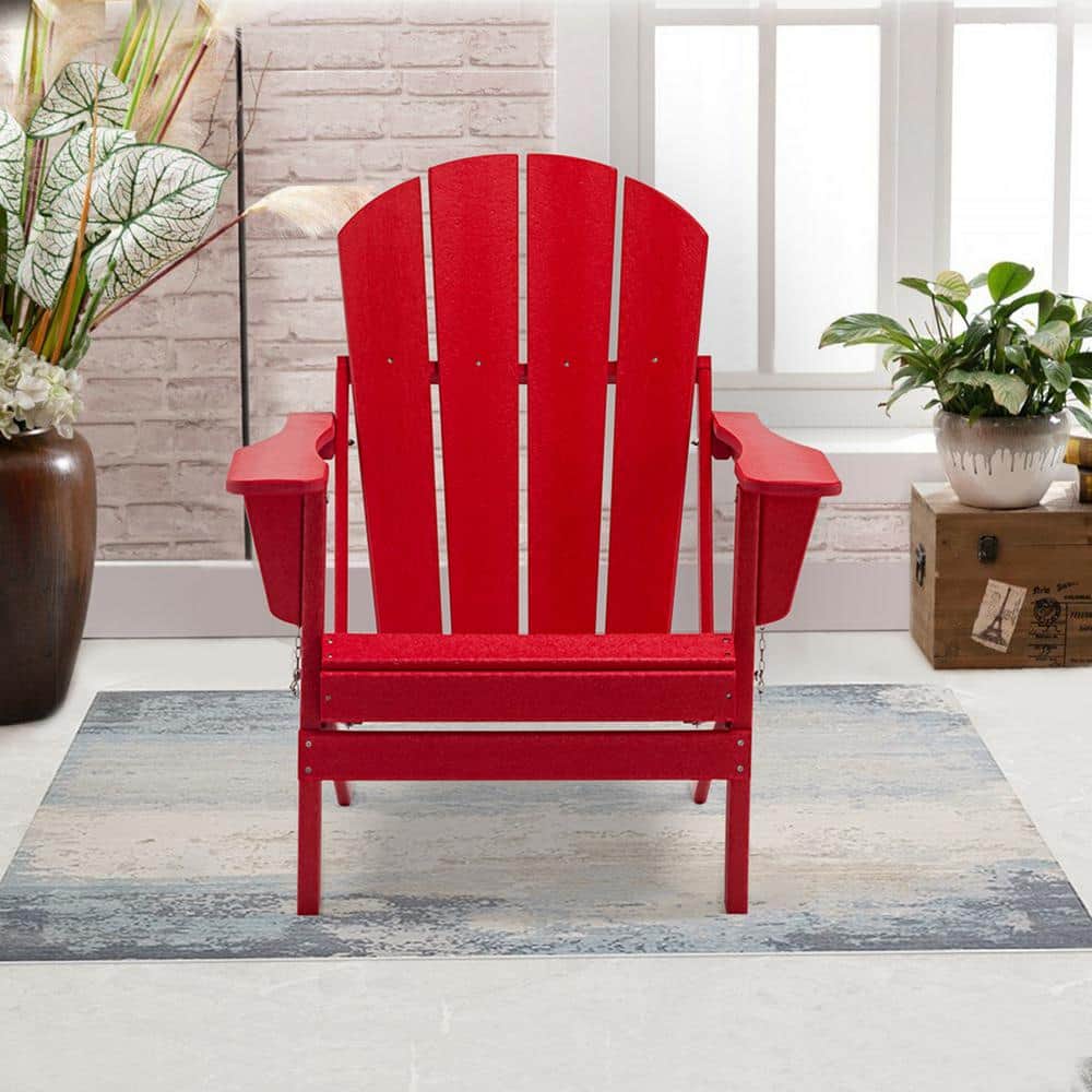 Wateday Outdoor Red Plastic Adirondack Chair PF2020HOS The Home Depot