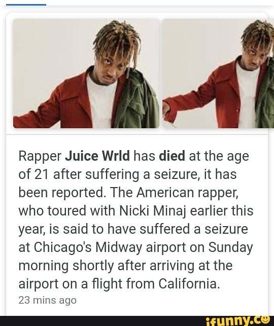 Juice WRLD dies at age 21 after suffering seizure in Chicago airport Why Did Juice Wrld Have A Seizure Juice wrld suffered a seizure during a police search of his private jet when it landed in at chicago airport and later died in. Juice wrld tragically died at the age of 21 after suffering from a seizure. His “medical emergency” was initially described as a seizure and a heart attack. Celebrity news website tmz said he died after suffering. Why Did Juice Wrld Have A Seizure.