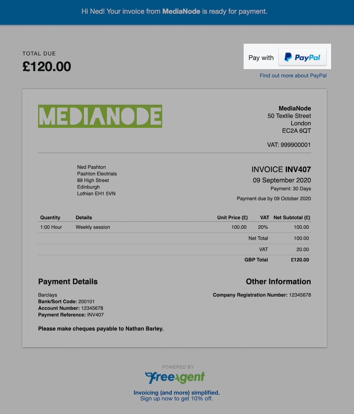 How to take invoice payments with PayPal FreeAgent