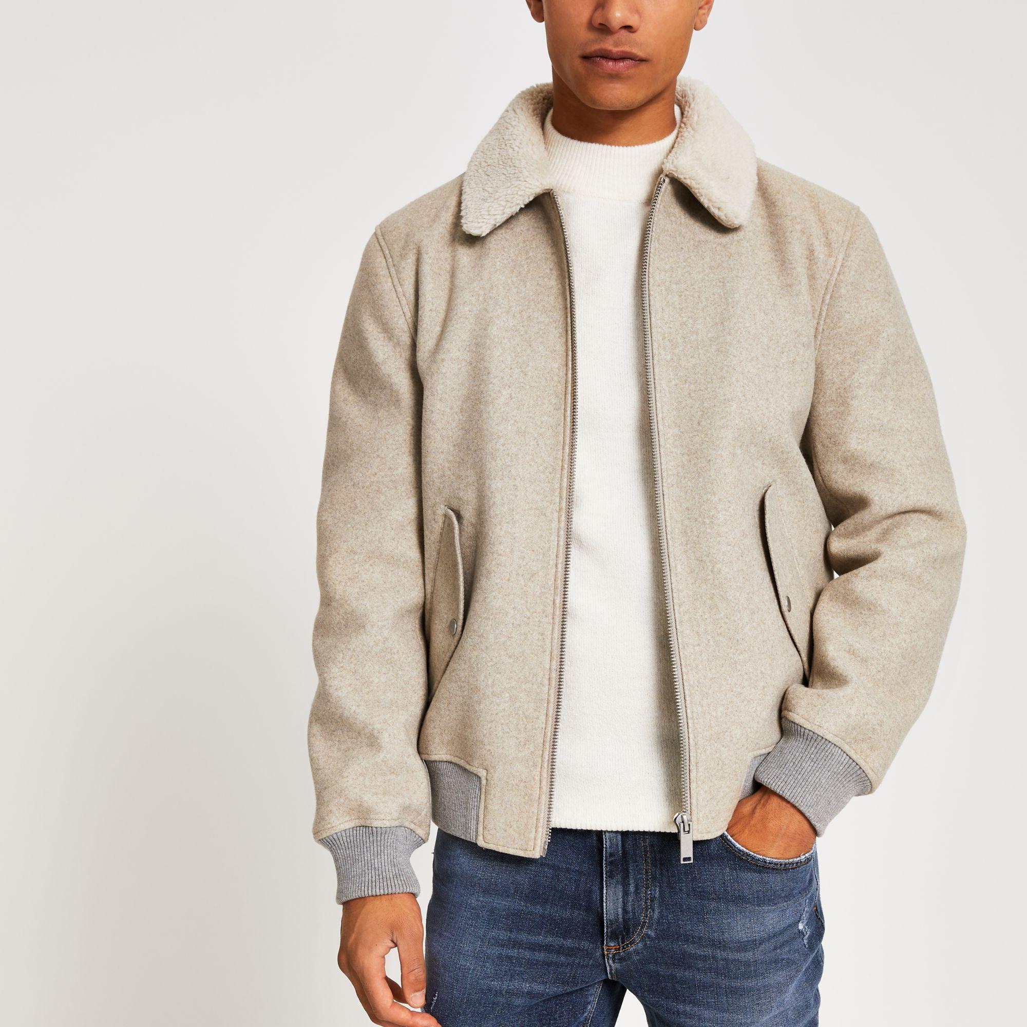 River Island Synthetic Oatmeal Grey Melange Collar Jacket in Gray