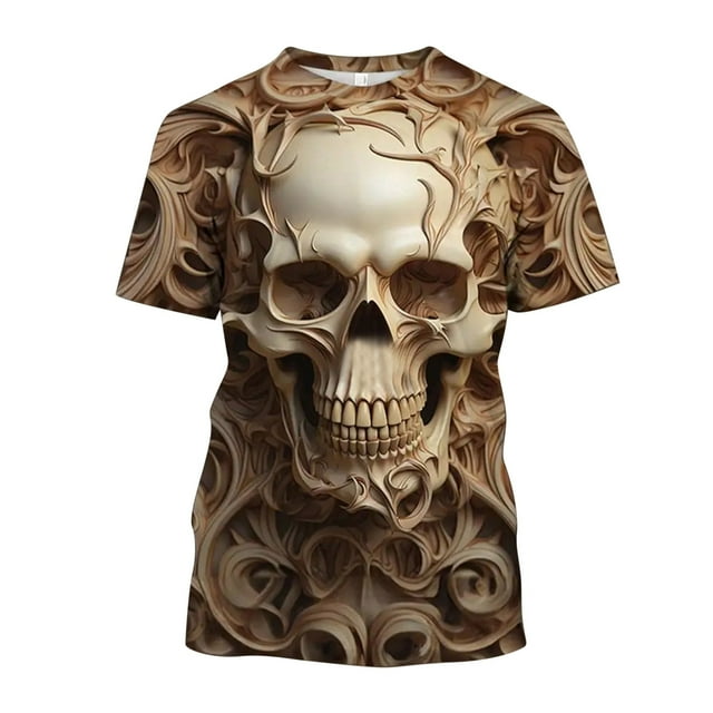 CHANGMOO Mens Slim Fit Tall T Shirts Skull Print Mens Tee Shirts
