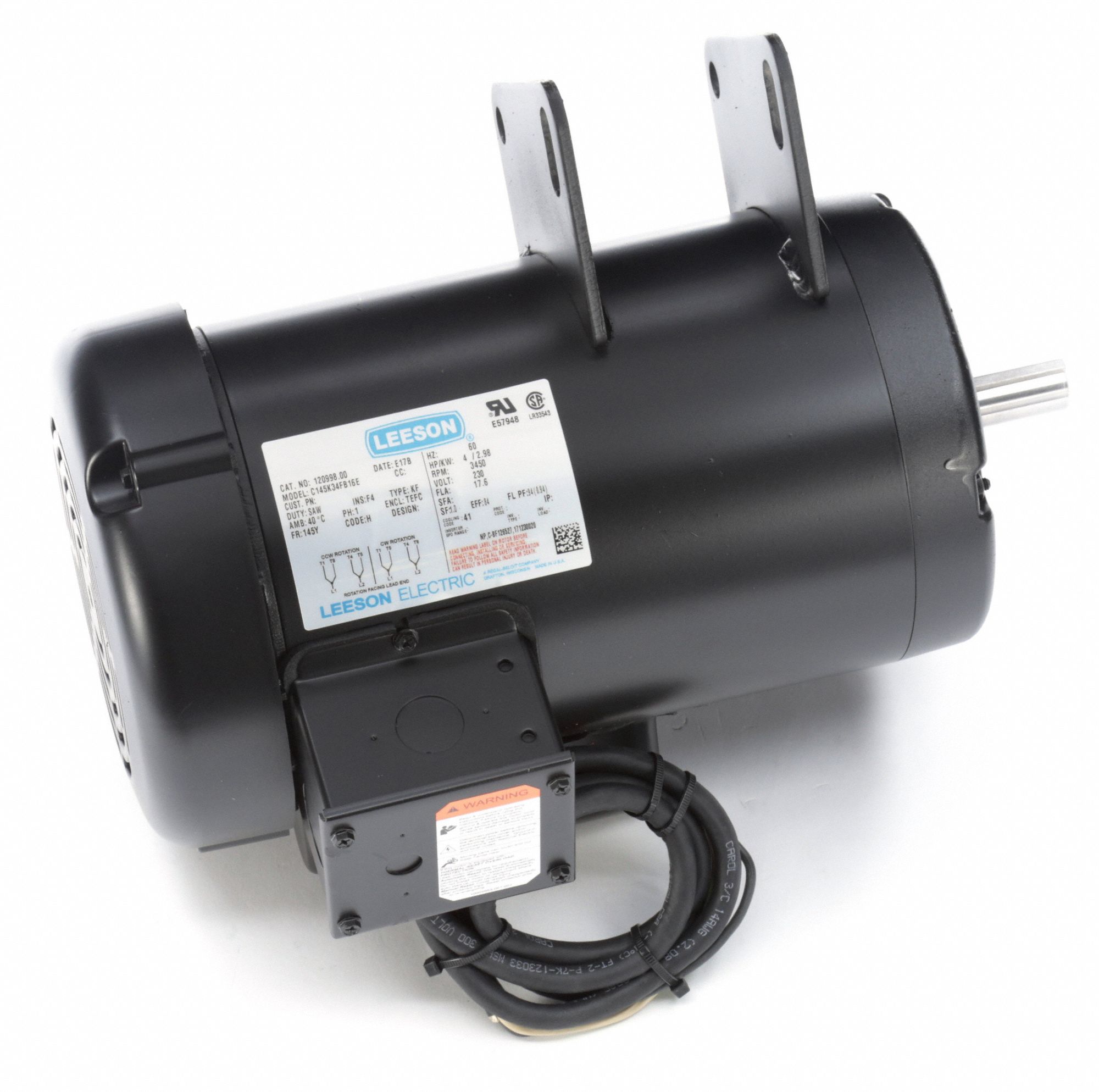 LEESON Table Saw Motor CapacitorStart, 4 HP, 3,450 Nameplate RPM