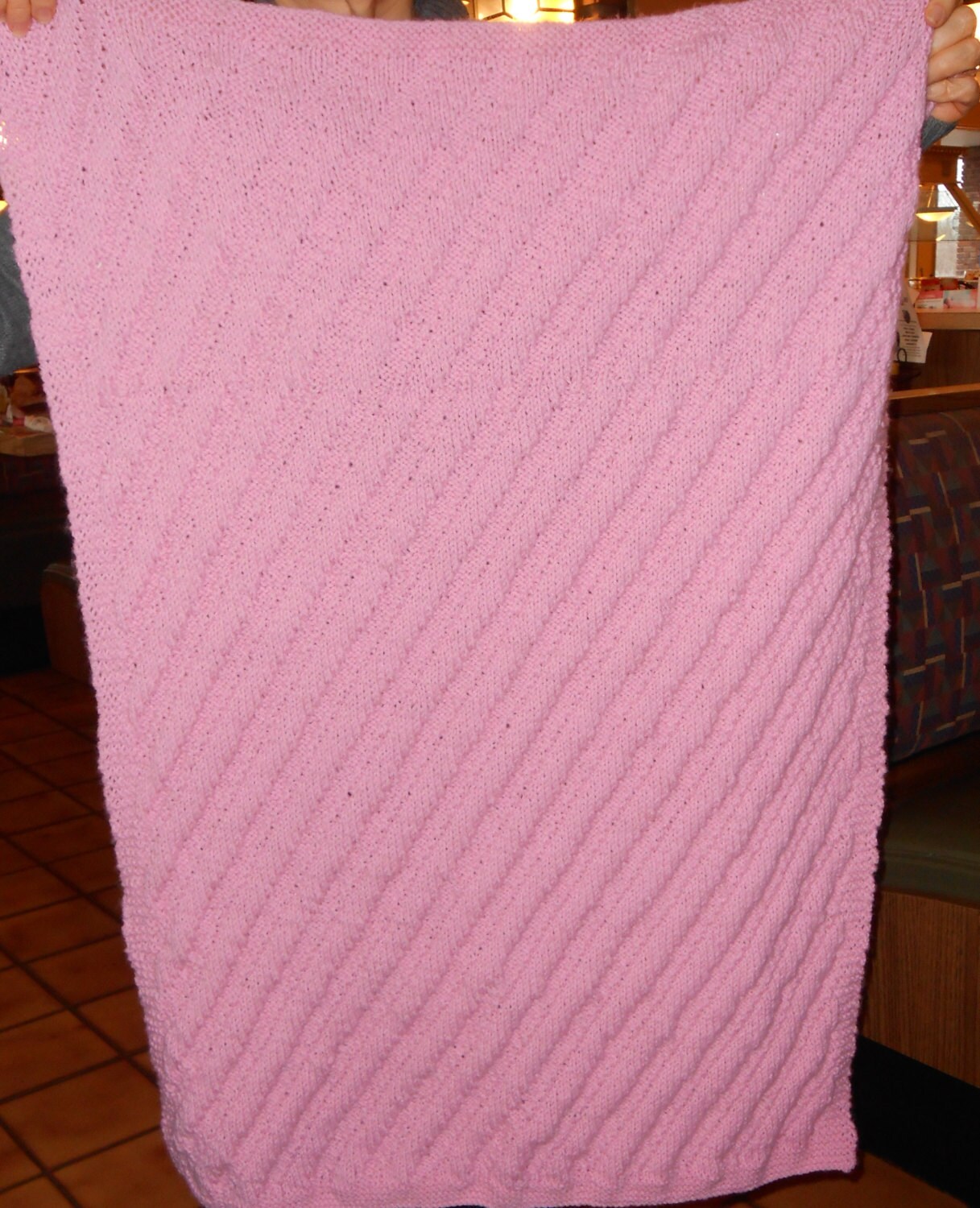Pink Hand Knitted Reversible Diagonal Baby Afghan or Baby Etsy