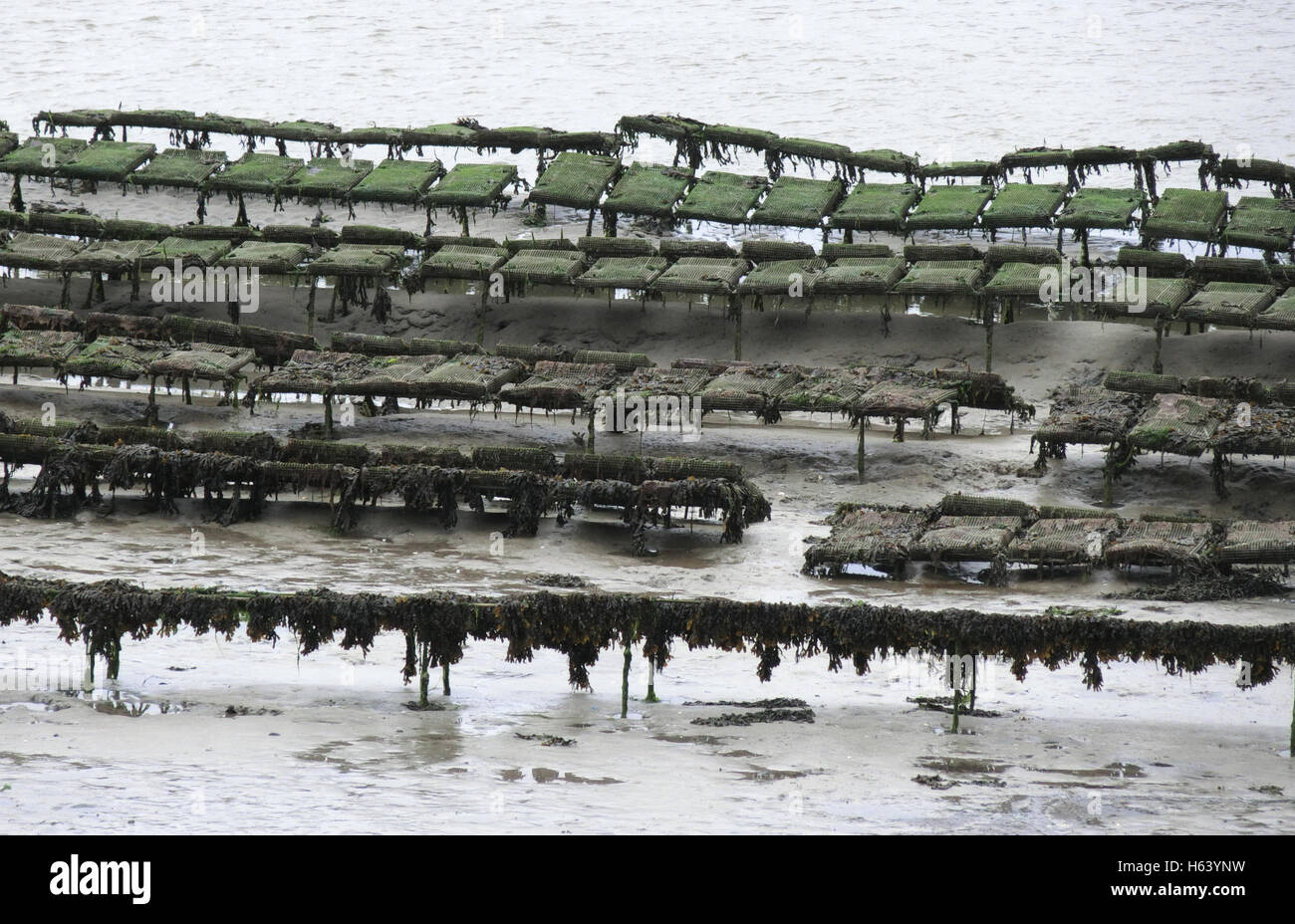 Oyster Farming in the Camel Estuary, Cornwall, England, UK Stock Photo