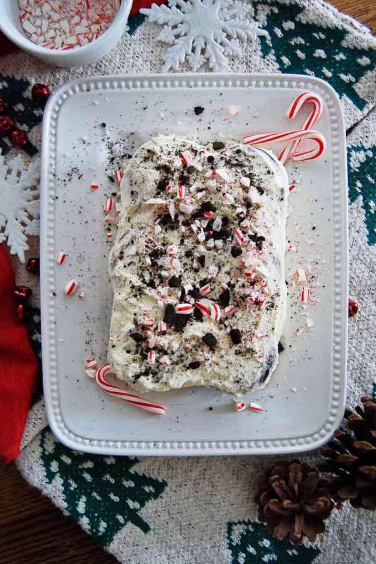 Peppermint Bark Icebox Cake Wood & Spoon Peppermint Icebox Cake Recipe This creamy peppermint icebox cake, with layers of minty cream and chips ahoy cookies, is a holiday winner.delicious, made in one bowl, no baking! It’s the perfect dessert for a party or baking day when you’re looking to stay indoors. To prepare the icebox cake: Add the mascarpone cheese, cream, sugar, and extract to the bowl of a stand mixer.. Peppermint Icebox Cake Recipe.
