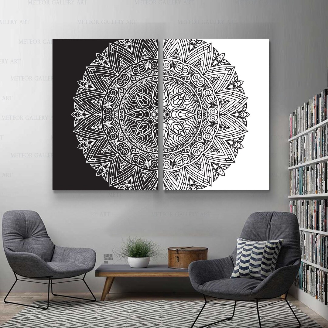 Mandala Wall Art White Black Pattern Canvas Boho Wall Decor Etsy