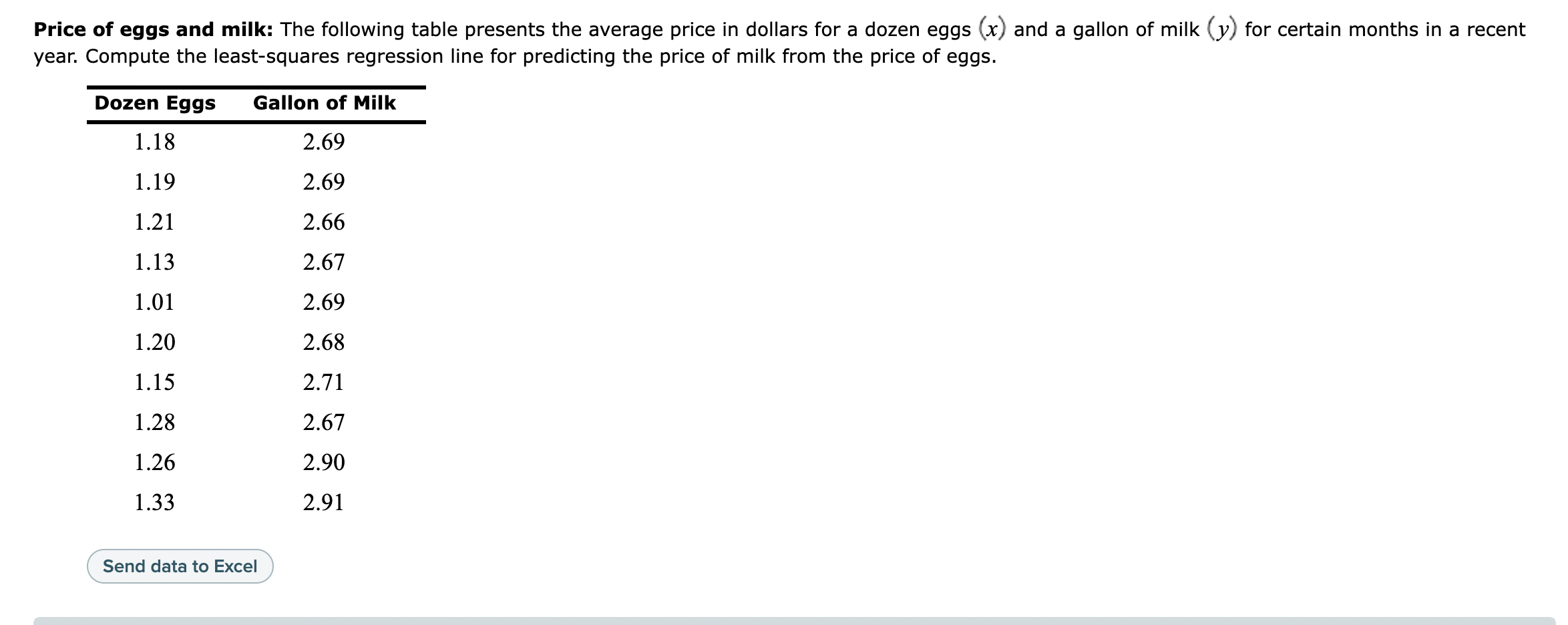 Solved Price of eggs and milk The following table presents