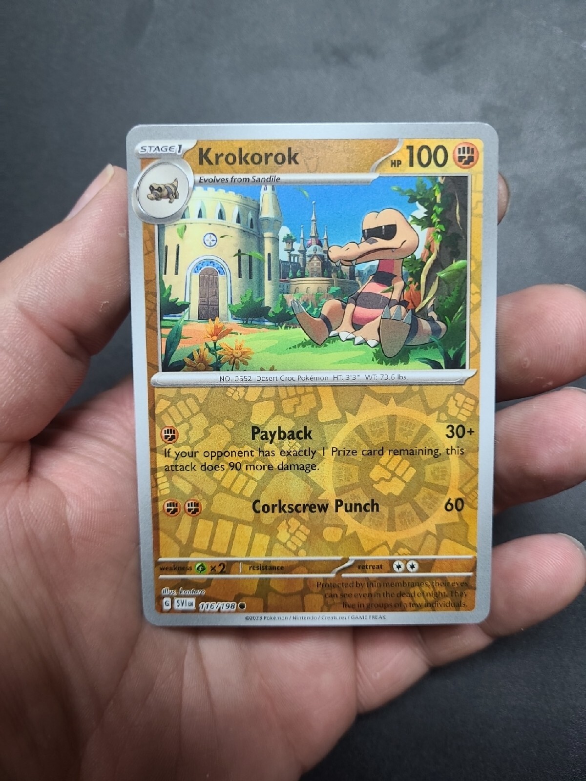 Pokemon Trading Card Game 116/198 Krokorok Reverse Holo Card SV01 Reverse Holo Krokorok English sets » scarlet & violet series » scarlet & violet » krokorok. Below is a compiled list of prices and values separated by tcg set. $0.49 and other cards from scarlet & violet (base set). Krokorok (reverse holo) black & white #64. Krokorok (league promo) black & white #64. Krokorok is a ground and dark type pokemon. Krokorok [reverse. Reverse Holo Krokorok.