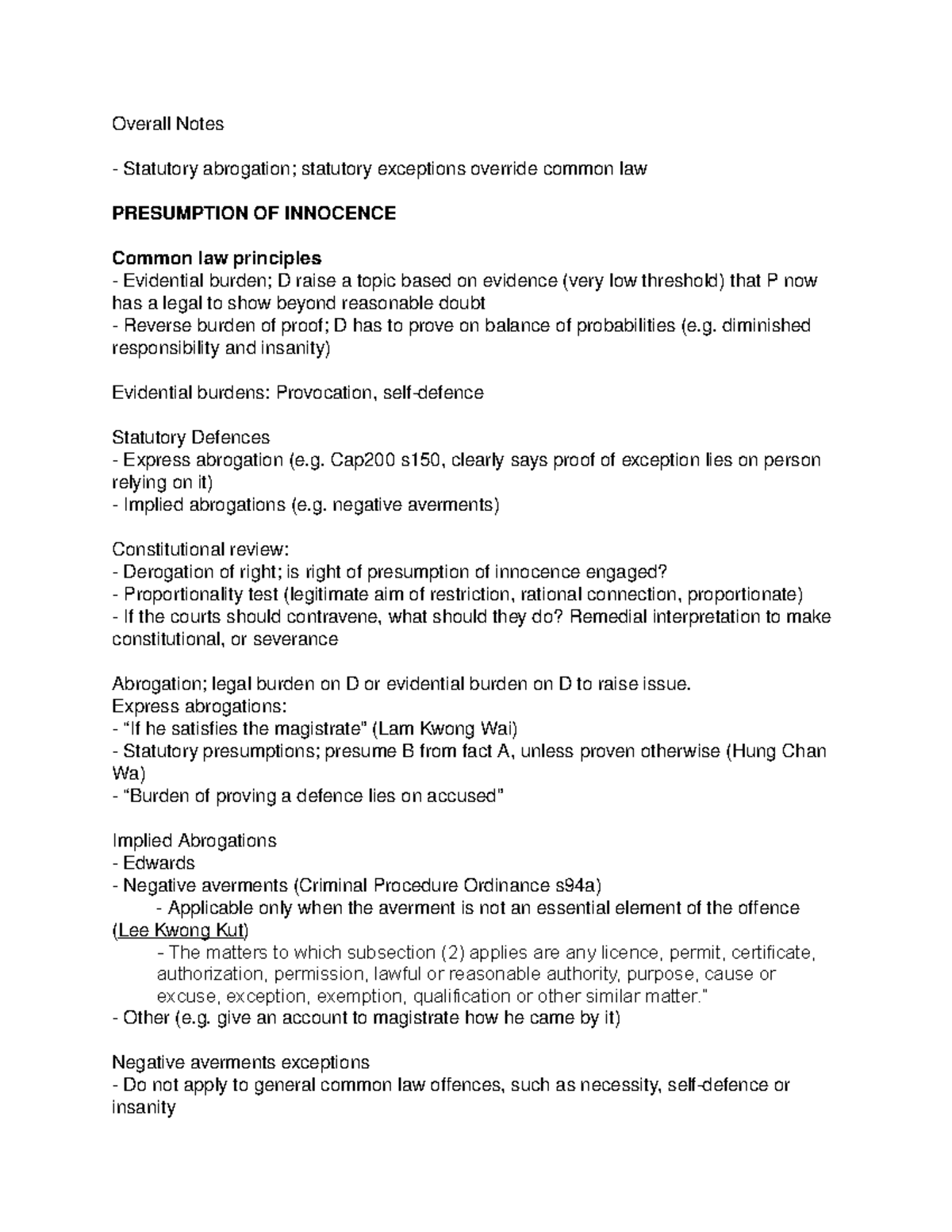Final Exam Notes Crim I Overall Notes Statutory statutory