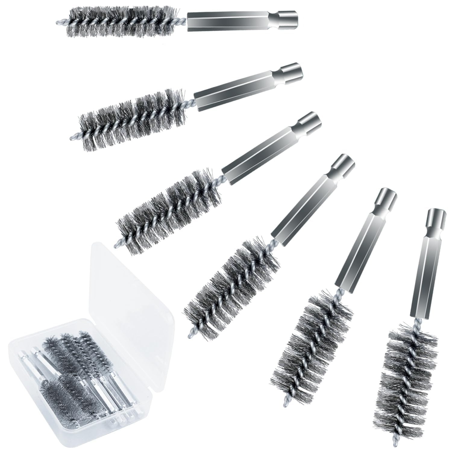 Buy 6 pieces bore brush in different sizes twisted wire cleaning brush with handle 1/4 inch hex shank for power drill impact driver, 4. Each brush is 4 in. The 6 piece tube brush kit is a complete assortment of cleaning brushes to accommodate all types of tubes, cylinders and bores. This durable, abrasive bore brush set of stainless steel brushes features the most common sizes for cleaning tubes, ports, bearings and other general. Buy 6 pcs stainless steel bore brush with 1/4 hex shank twisted wire bore brushes. This durable, abrasive, brass bore brush set features the most common sizes for cleaning tubes, ports, bearings and other general wire brush applications. Long and has a twist wire handle to maintain a good. This durable abrasive bore brush set features the most common sizes for cleaning tubes, ports,. This durable, abrasive, stainless steel bore brush set features the most common sizes for cleaning tubes, ports, bearings and other general wire. 6 pieces bore brush in different sizes twisted wire cleaning brush with handle 1/4 inch hex shank for power drill impact driver, 4 inch long (8 mm, 10.