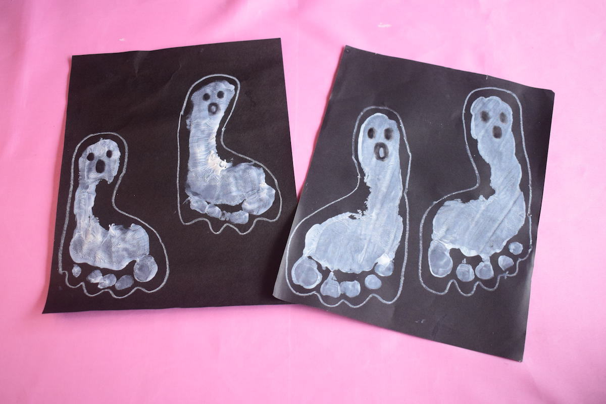 Footprint Ghost Craft So i decided to try the classic ghost footprint craft with all 3 boys. In fact, this easy halloween craft works well for even the youngest crafters like babies and toddlers with a little help. Using paint and their tiny feet, kids can make adorable ghosts, pumpkins, monsters, and more. We are making footprint ghosts in this easy halloween craft. Footprint Ghost Craft.