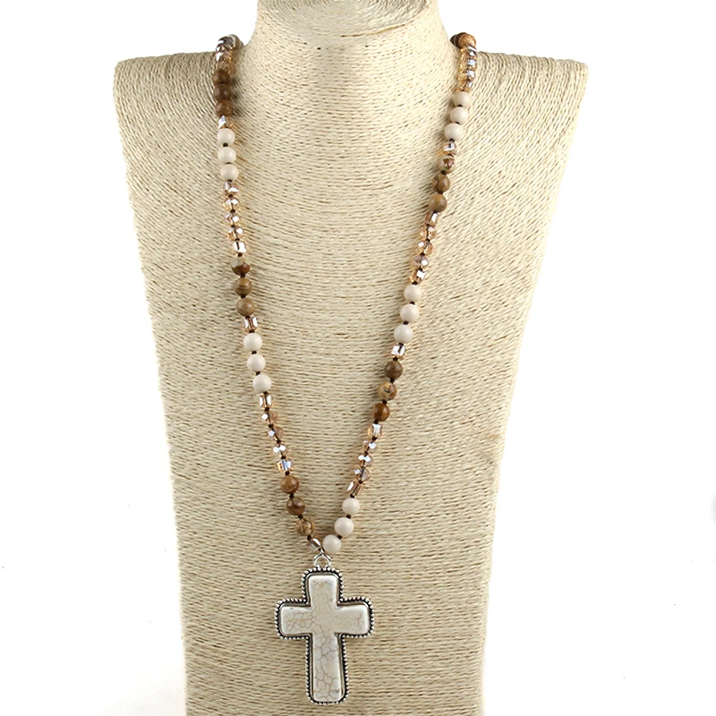 Women Cross Stones Necklace Stone Pendants Cross Pendant Bohemian