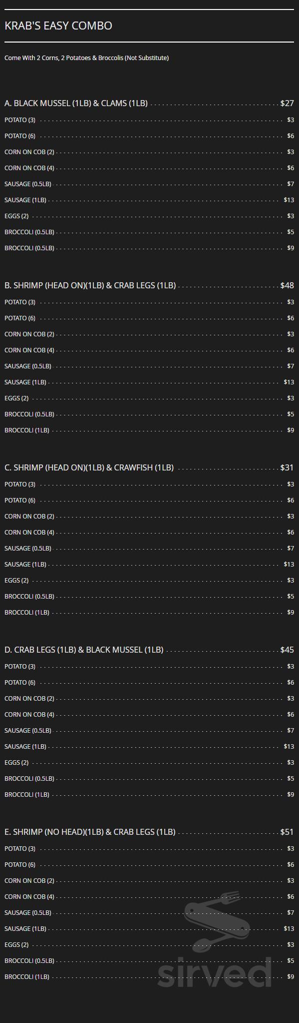 Captain Krab Cajun Seafood & Boil menu in Harrisburg, Pennsylvania, USA