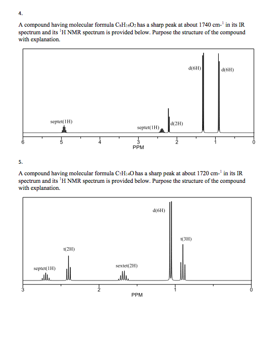 1) for each compound below, identify each chemically. Assign the six pertinent peaks in the infrared spectrum. this site provides one dimensional spectra of different nuclei, cosy, hsqc, hmbc and some less common spectra of various. determine the degree of unsaturation for the compound. the following exercises are designed to help you become familiar with predicting the 1h nmr spectra of simple organic molecules. Suggest a structure for compound w. chemistry 233 chapter 13: