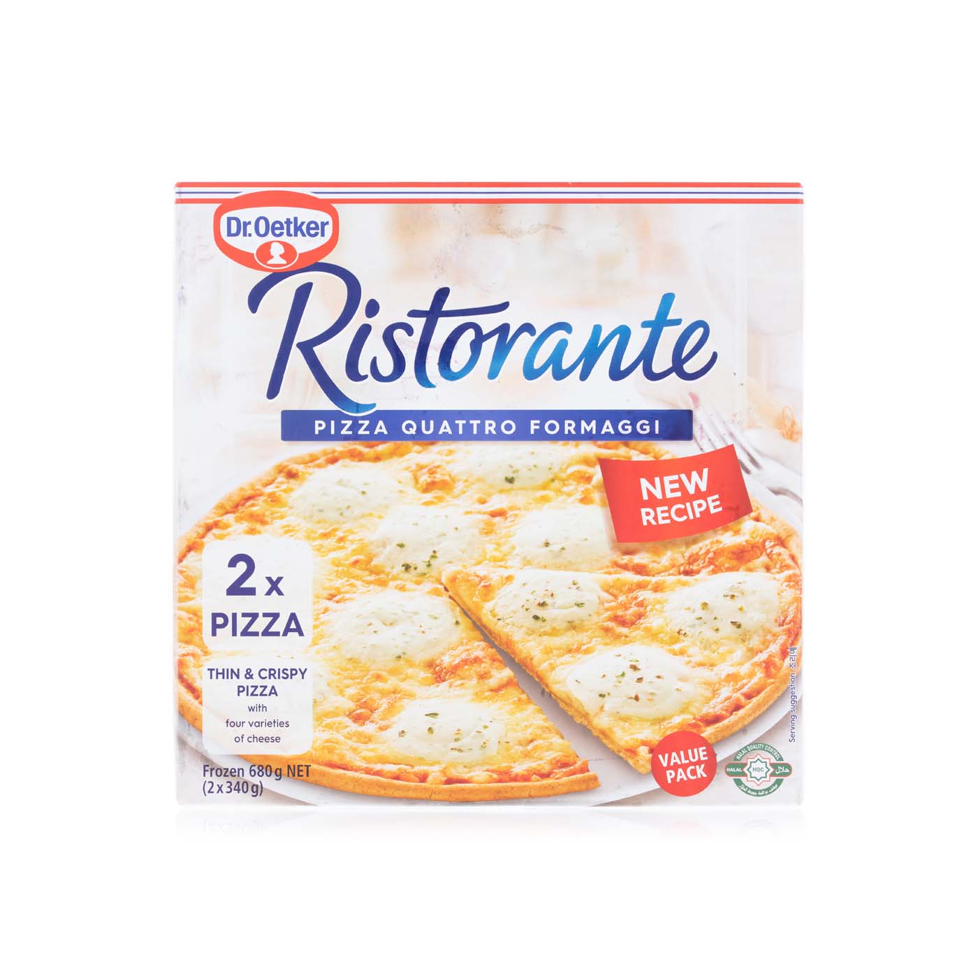 Dr. Oetker ristorante quattro formaggi pizza 2s 340g Spinneys UAE Dr Oetker Quattro Formaggi Pizza fall back in love with pizza with the help of our thin & crispy ristorante quattro formaggi pizza; Deliciously topped with hearty emmental, savoury edam, aromatic mozzarella, creamy blue cheese, herbs and a mild tomato sauce. Oetker ristorante pizza quattro formaggi is topped with a delicious combination of mild edam, hearty emmental, tasty gorgonzola and fine mozzarella. Oetker ristorante. Dr Oetker Quattro Formaggi Pizza.