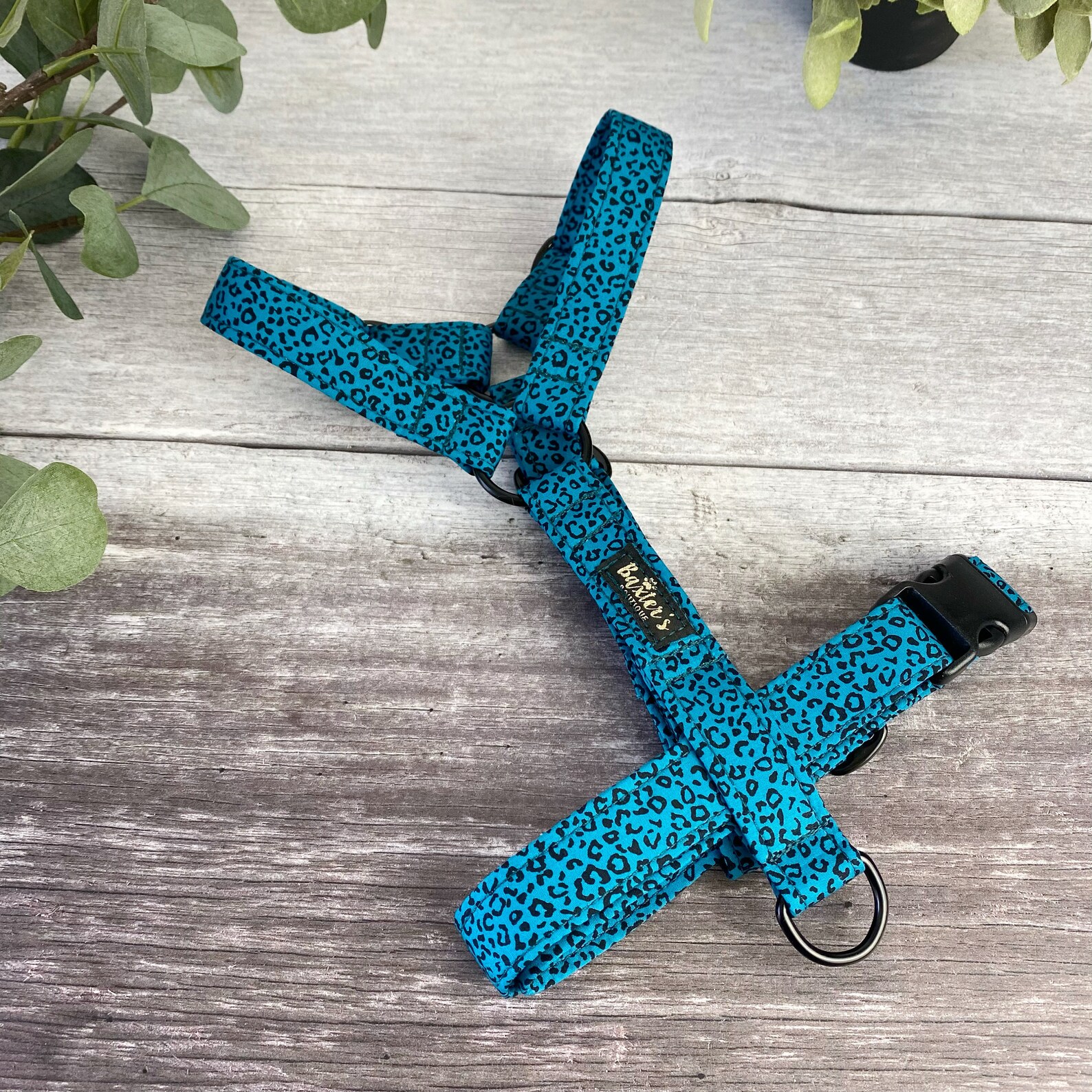 Dog Harness Teal Leopard Print Dog Harness Handmade Dog Etsy