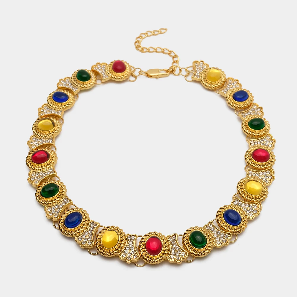 Jbjd Vintage Jewelry Multi Color Rhinestone Necklace Gold Tone Collar